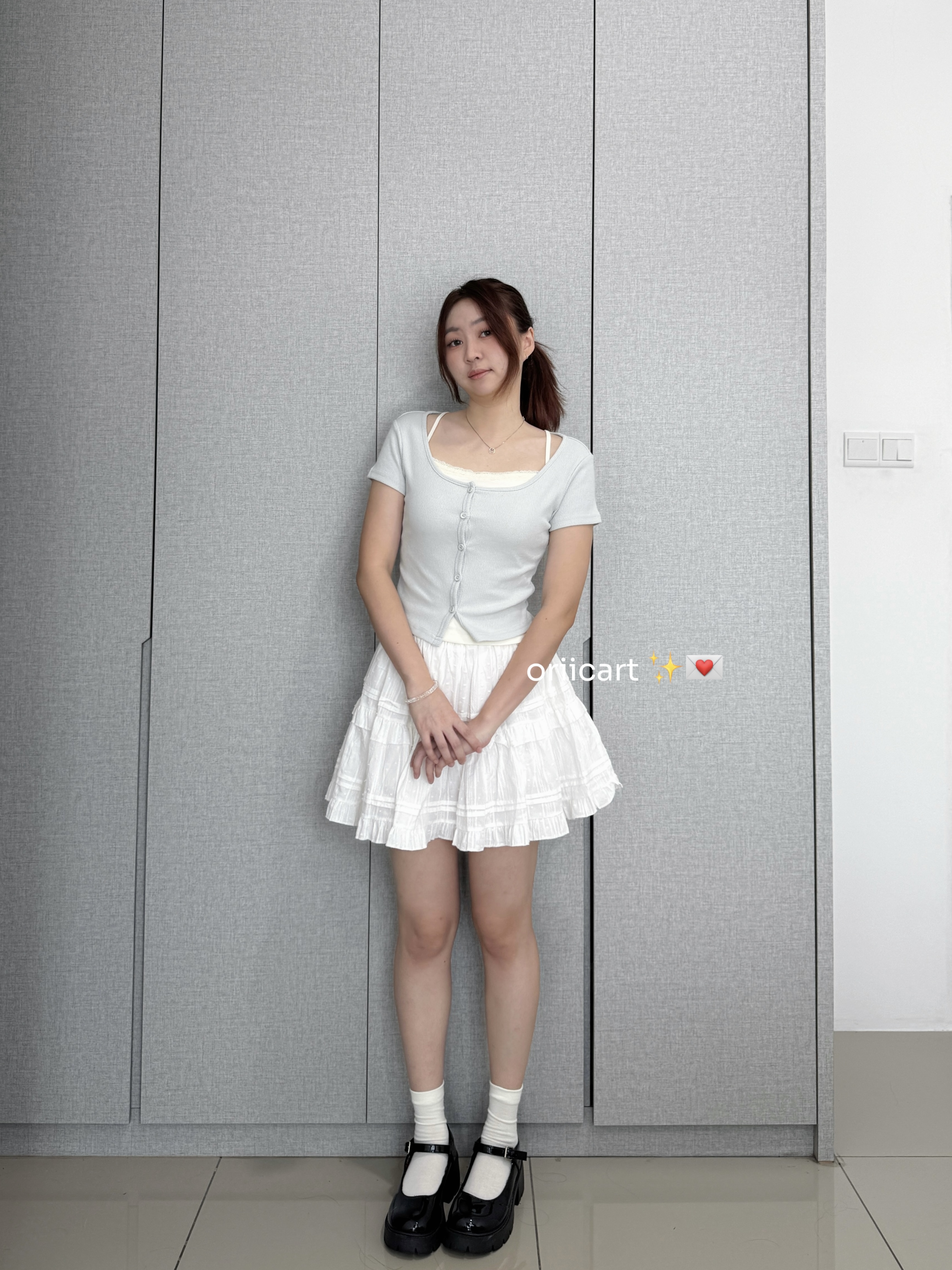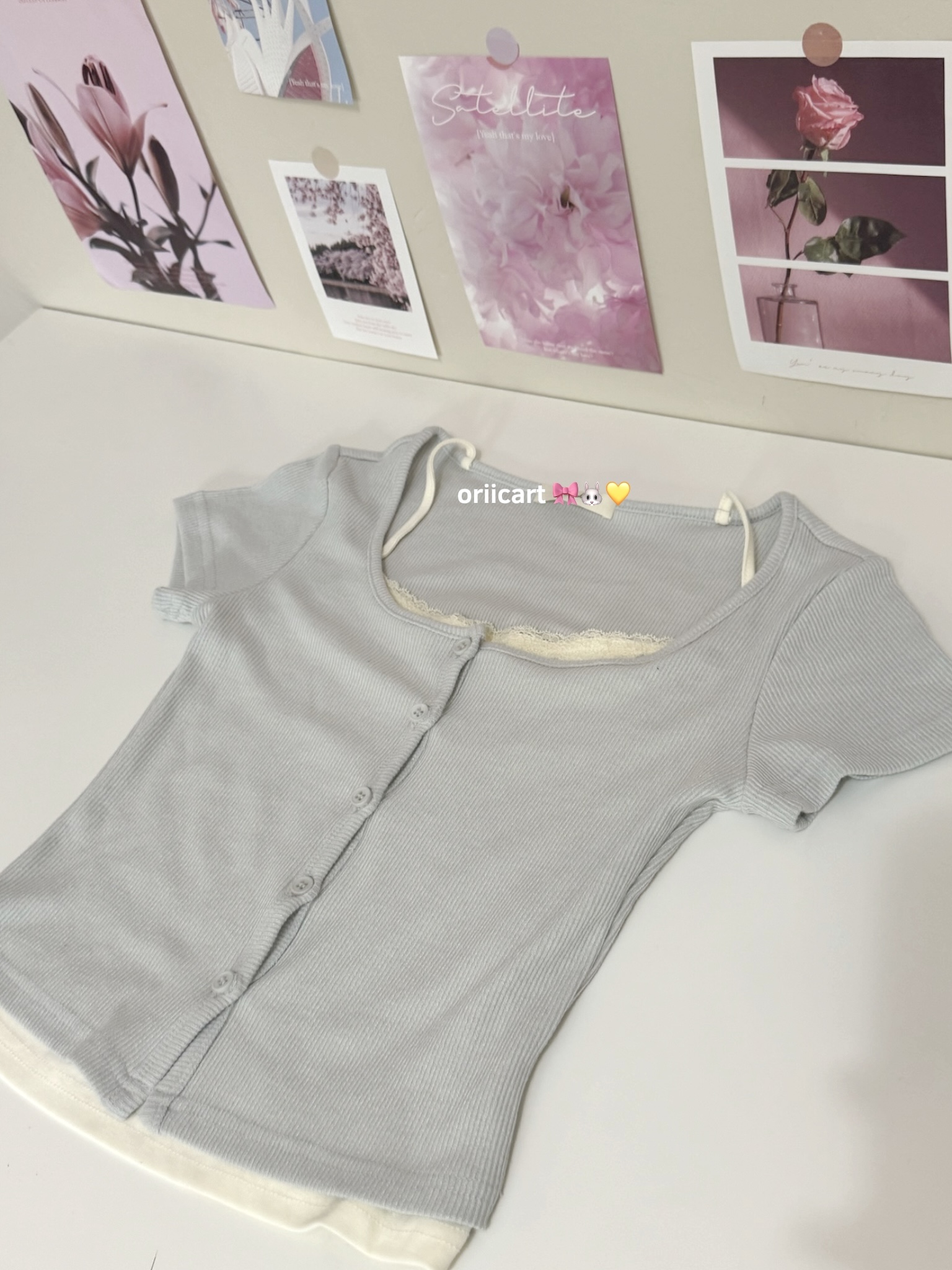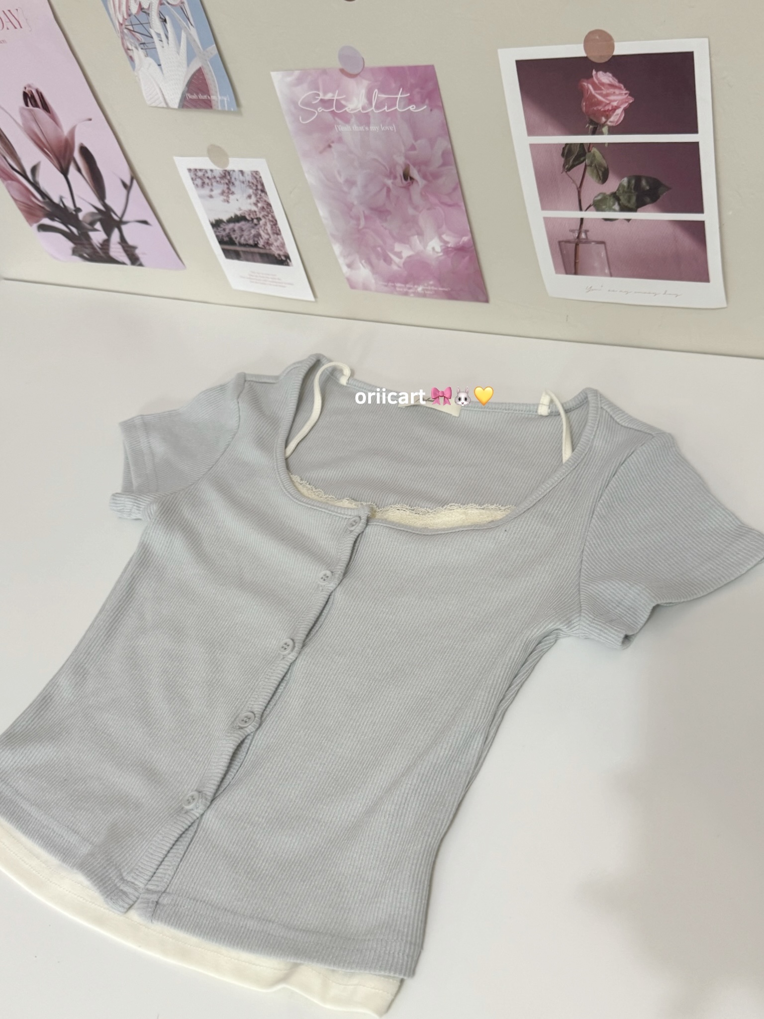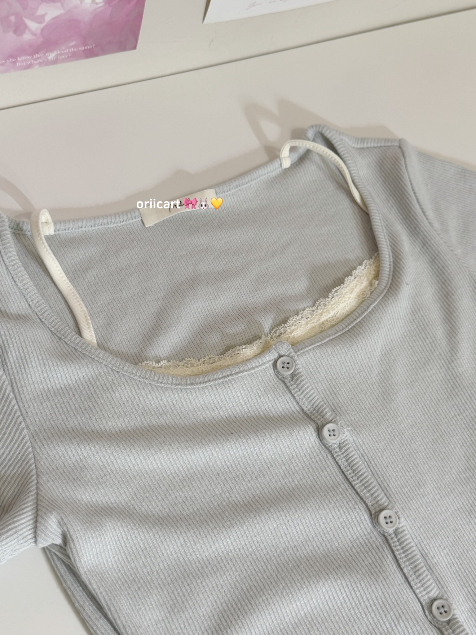 T052 - Lace-trimmed Button-down Crop Top