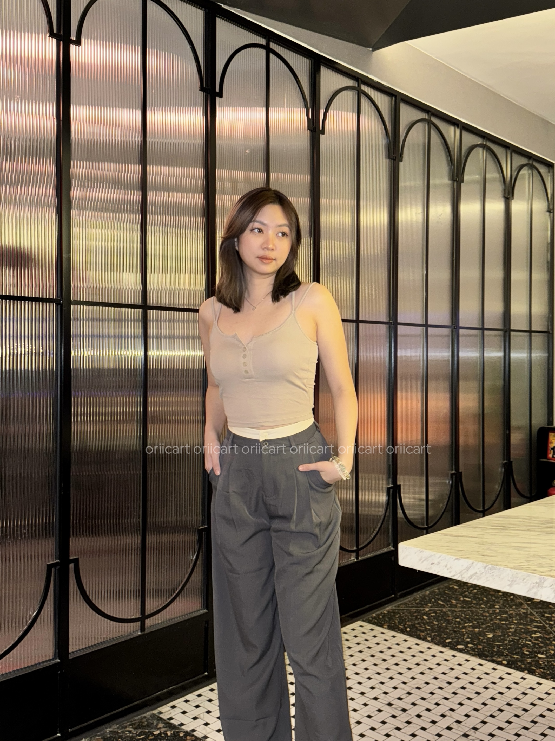 T034 - V Back Apricot Cami Top