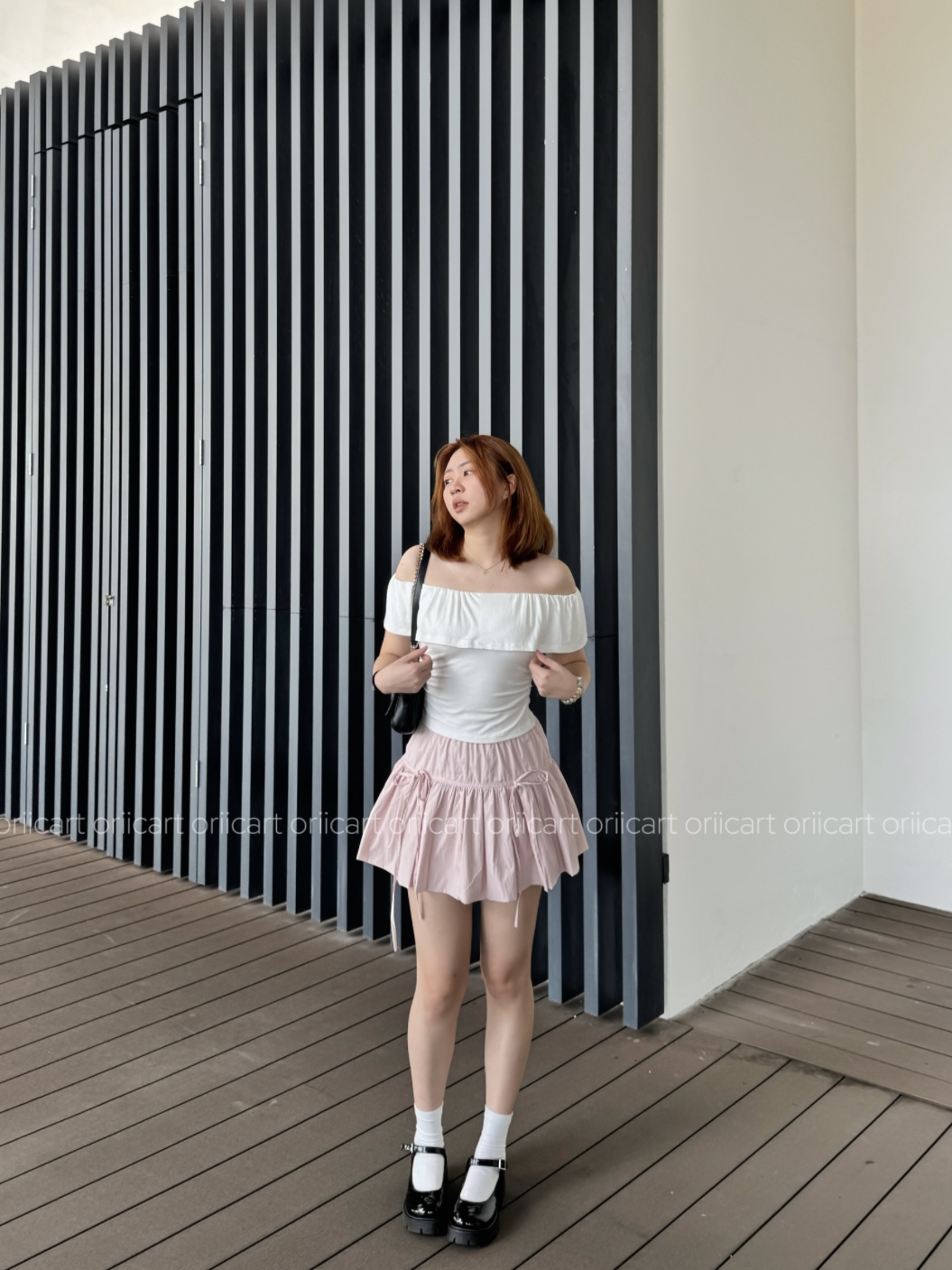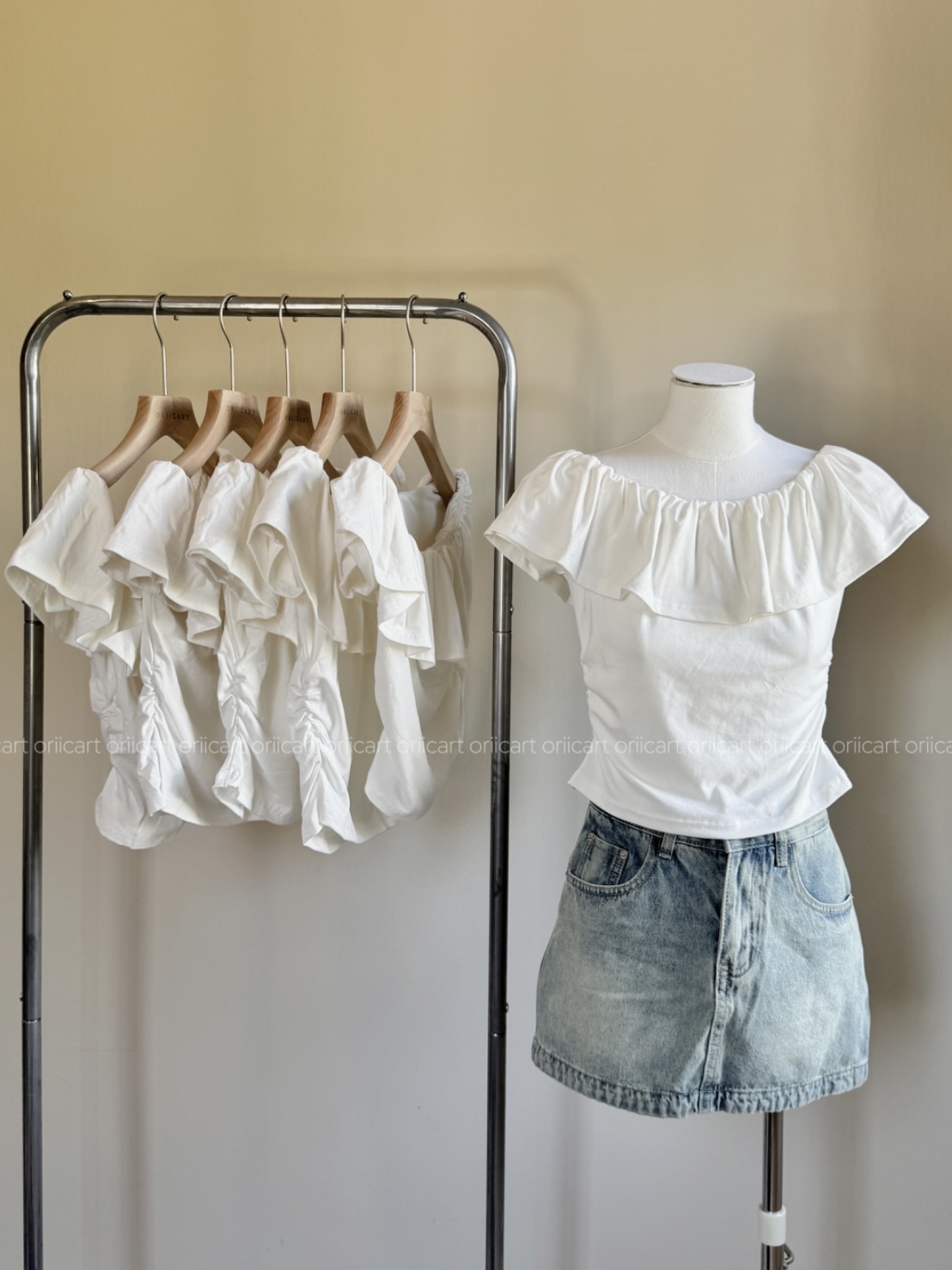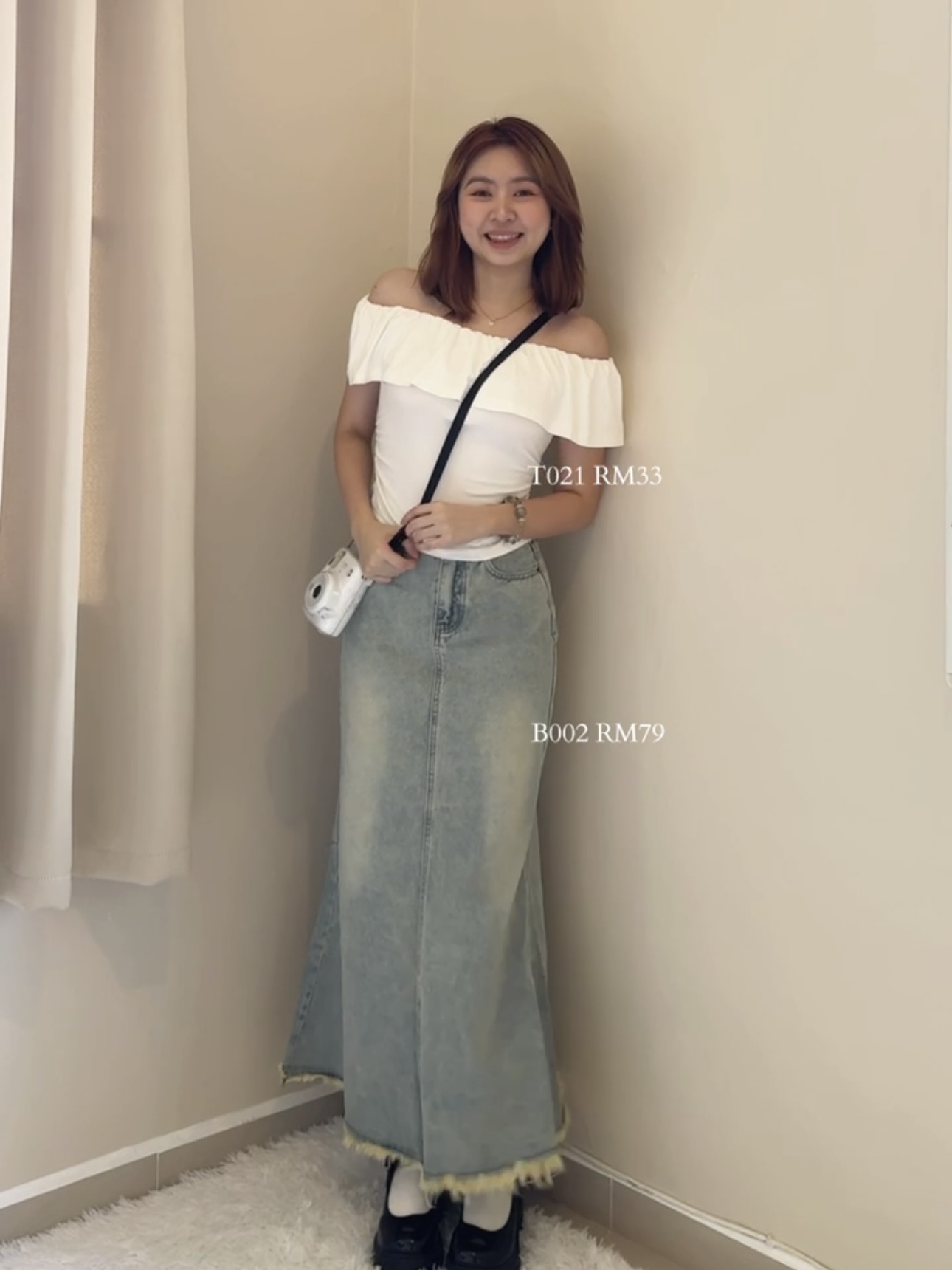 T021 - White Off-Shoulder Nipped Waist Top