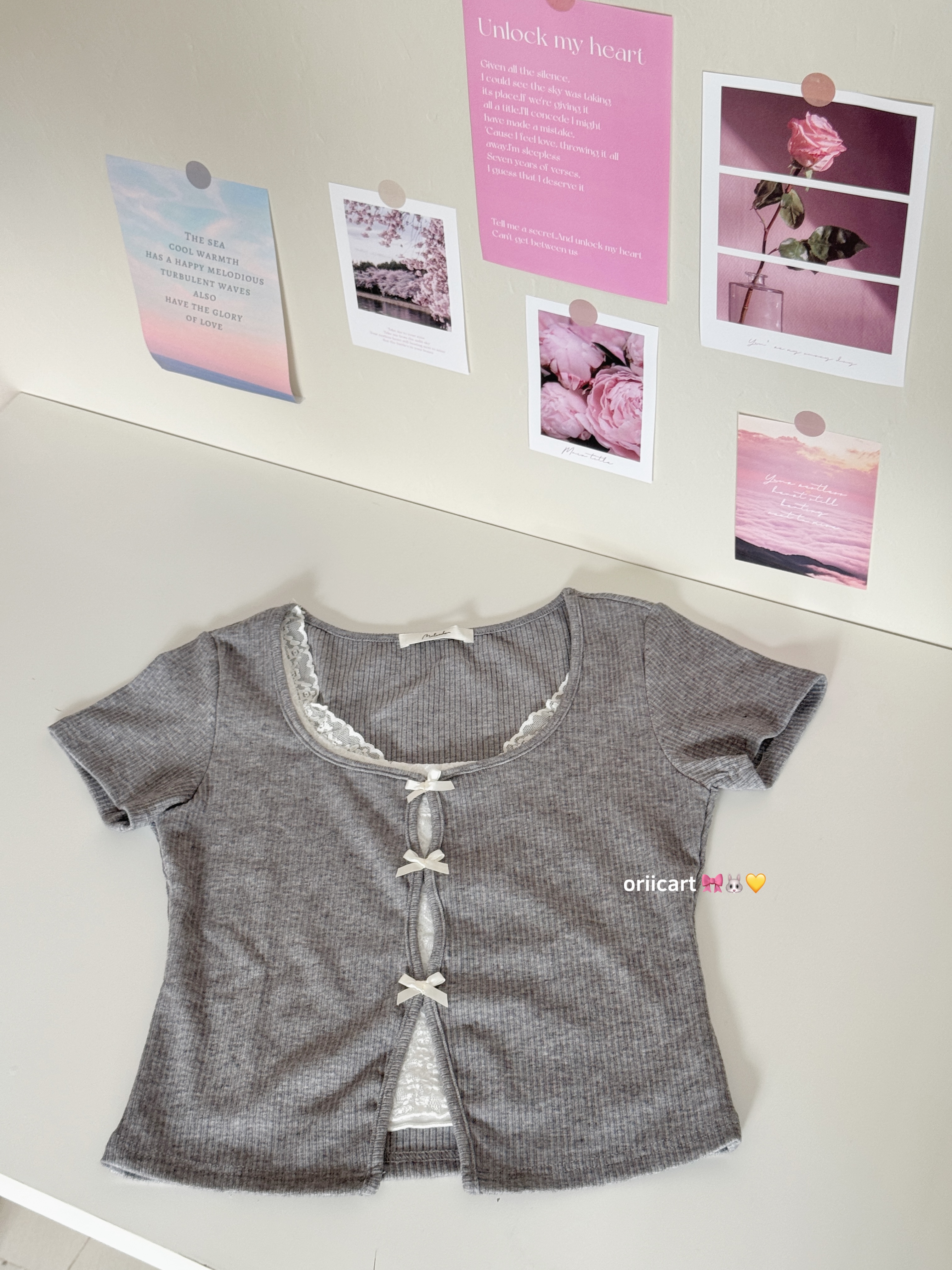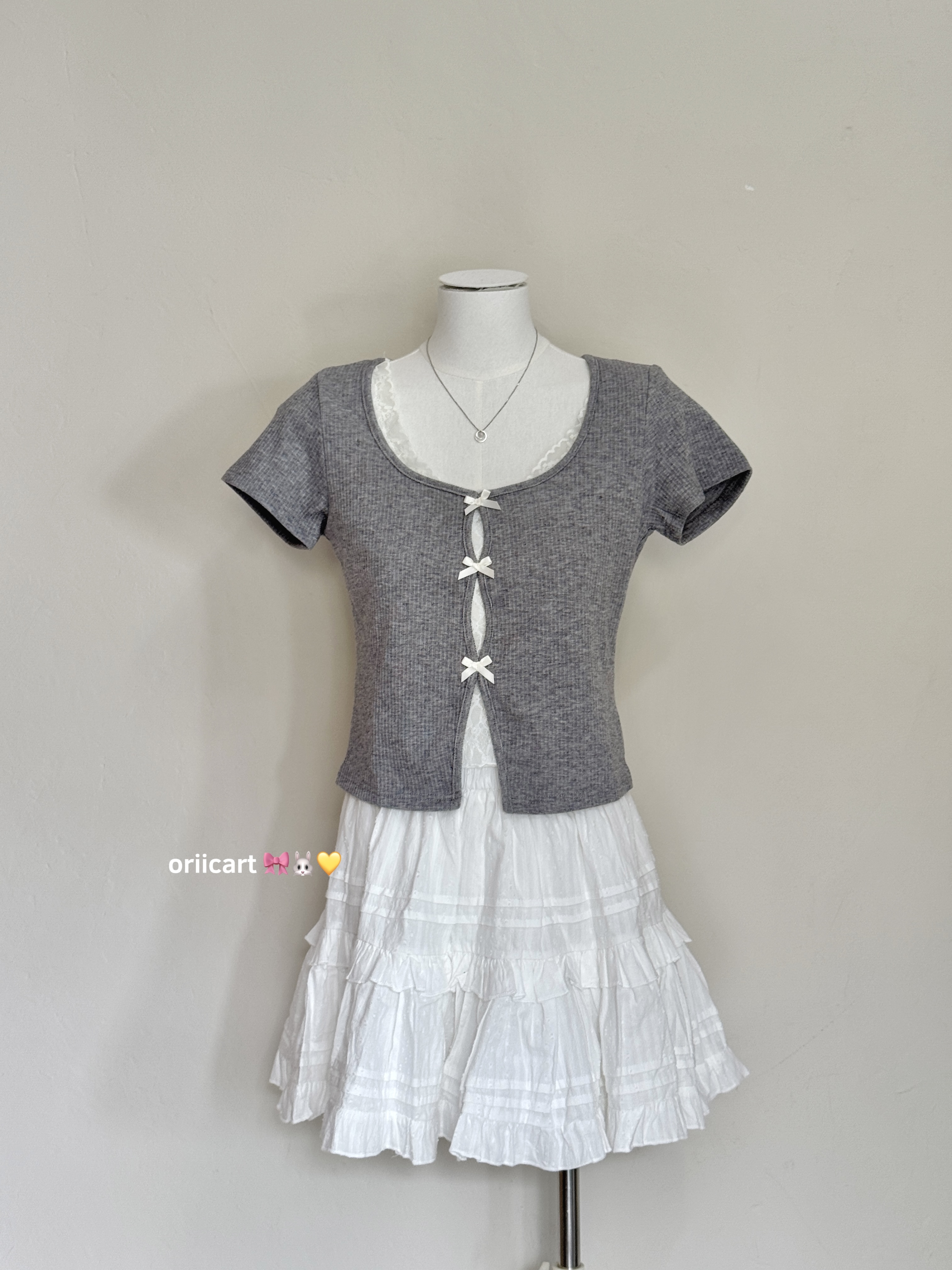 T043 - Ribbed Lace-trim Bow-tie Crop Top